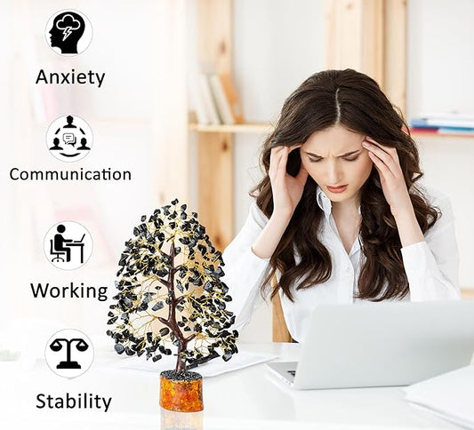 Black Tourmaline Gemstone Tree of Life Crystal Tree for Positive Energy, Handmade Chakra Tree Feng Shui Decor Good Luck Gem Bonsai Money Tree, Wealth & Prosperity, Spiritual