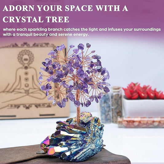 Amethyst Chakra Tree of Life - Crystal Tree for Positive Energy, Feng Shui Decor - Handmade Gemstone Tree, Good Luck Money Bonsai, Purple Healing Crystals, Meditation Stone, Spiritual Mystical Gift