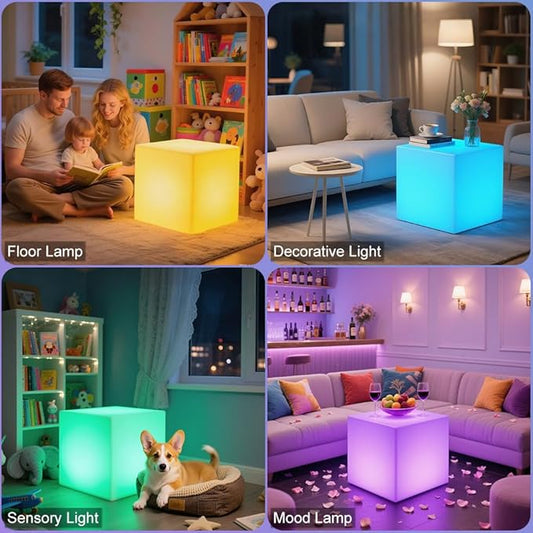 20-in LED Cube Chair, Dimmable RGB Color Changing Light Cubes w/Remote, Versatile Large LED Cube Seat, Rechargeable Light Table Waterproof Outdoor Floor Lamp, Ideal Home Garden Patio Pool Party Decor