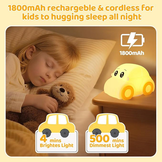 Car Night Light for Kids, Color Changing+Dimmable+1800mAh Rechargeable+Timer+Silicone, Squishy Touch Toddler Night Light, Novelty Nursery Nightlight for Kids Room, Funny Gifts, Boys, Girls, Baby