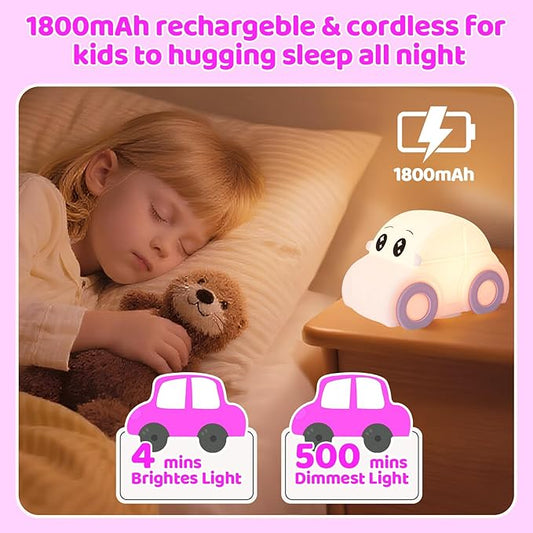 Car Night Light for Kids, Color Changing+Dimmable+1800mAh Rechargeable+Timer+Silicone, Squishy Touch Toddler Night Light, Novelty Nursery Nightlight for Kids Room, Funny Gifts, Girls, Baby