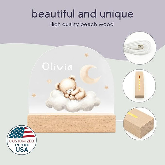 Baby Bear Night Light/Girls Night Light/Light for Baby/Customized Gifts for Kids/Personalized Baby Boy Gifts with Name/Unique Nursery Decor