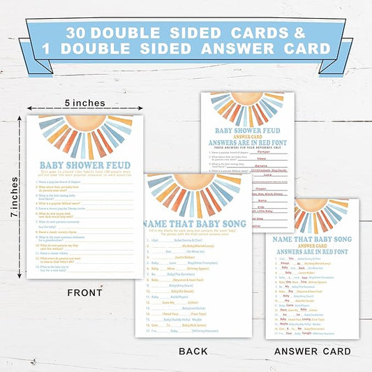 Baby Shower Feud & Name That Baby Song Theme Baby Shower Game Activities-Game Cards For Boys & Girls-30 Retro Sunshine Game Cards & 1 Answer Card-Baby Shower Party Supplies & Decorations-A05