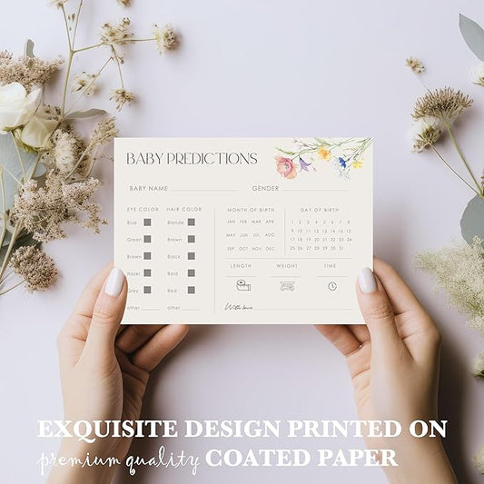 Advice For New Parents Baby Shower, Baby Predictions & Advice Cards For Baby Shower Games Activities, Wishes for Baby, 25 Double-Sided Thick Cards – Flower A08