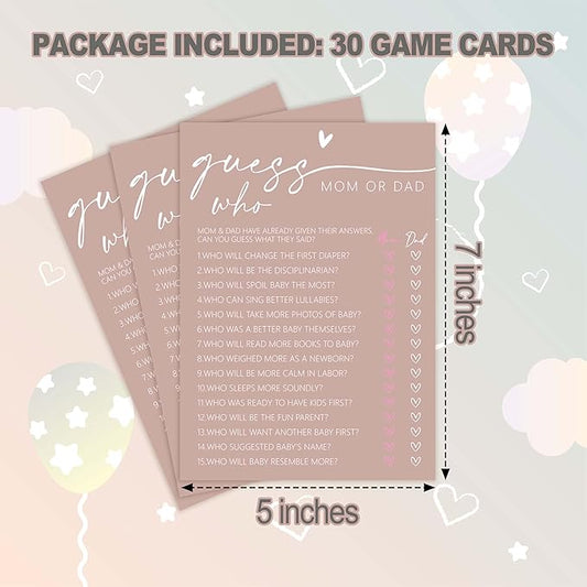 Baby Shower Games, Pink Who Mom or Dad Game Cards, 30 Sets Baby Gender Reveal Party Decorations Supplies Favors - F01