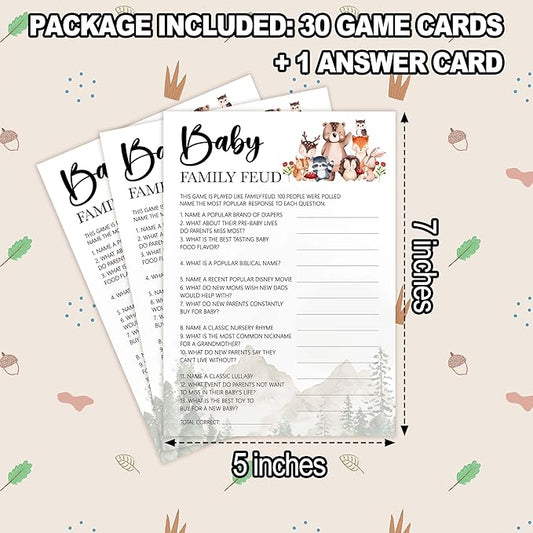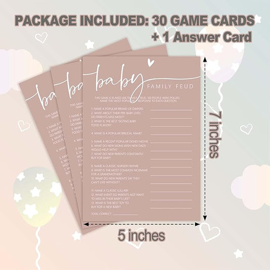 Baby Shower Game Cards - Set of 30 Family Feud - Double Sided Print - Baby Announcement Gender Reveal Game Card - Party Activities Supplies