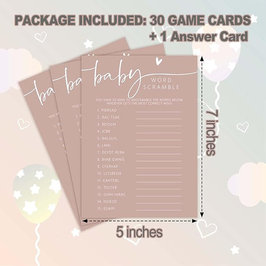 Baby Shower Games - Pink Baby Word Scramble + 1 Answer Card, 30 Sets Gender Reveal Party Decorations - F07