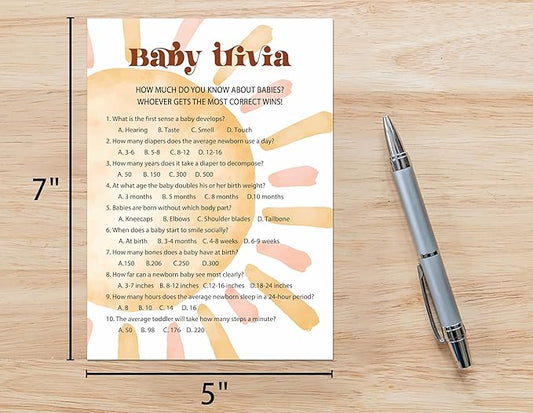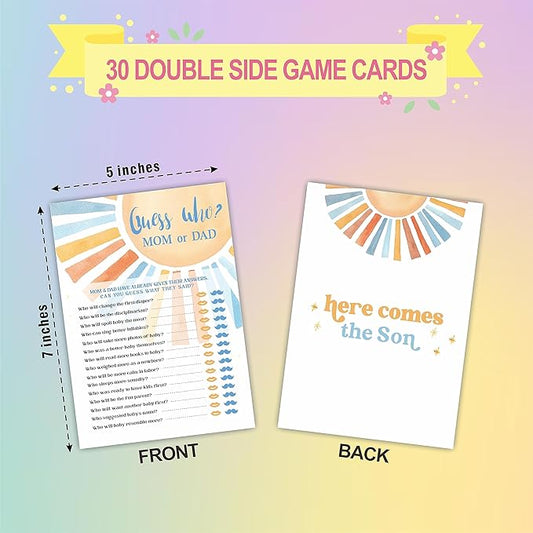 Baby Shower Games For Boy, Boho Sun Baby Trivia Baby Shower Game, Sunshine Here Comes The Son Gender Reveal Games, Set of 25 Cards(Bohosun002)