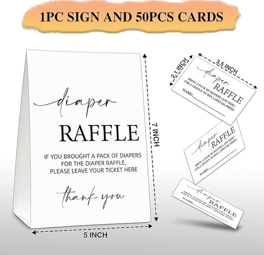 Baby Shower Game Card Set, Diaper Raffle Tickets and Sign, Modern Black and White 1 Sign and 50 Cards, Minimalist Boy Girl Gender Neutral Baby Shower Supplies-B01