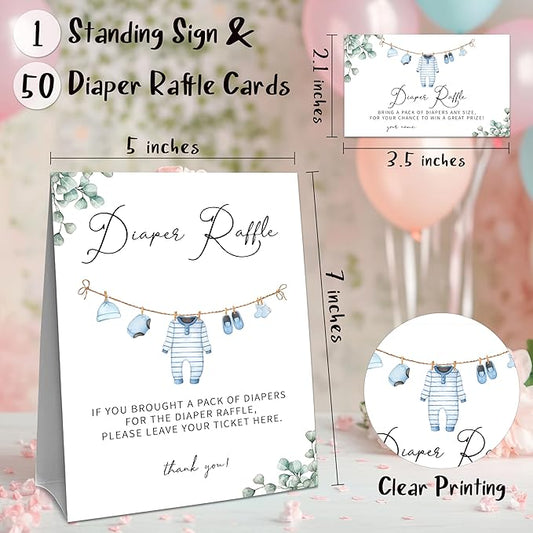 Greenery Diaper Raffle Set For Baby Shower - 50 Raffle Tickets With 1 Standing Sign - Baby Announcement, Gender Reveal Baby Shower Party Decoration Game Set - A02