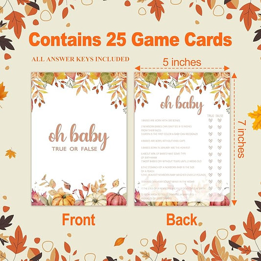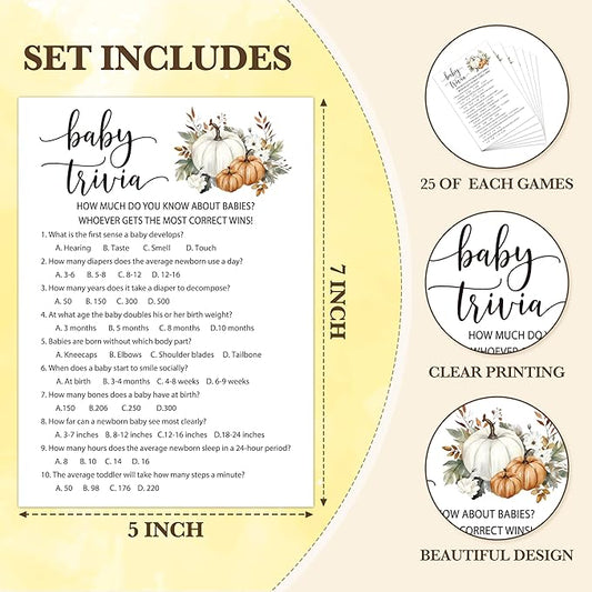 Fall Baby Shower Games, Baby Trivia Themed Gender Reveal Party Game, Fall Festival Games Cards With Pumpkin Design, Boho Baby Shower Games, Thanksgiving Party Supplies -02