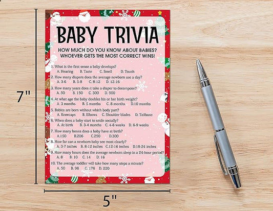 Baby Shower Game Cards, Baby Trivia Game, Christmas Party Cards for Gender Neutral, Set of 30 Cards(Chris002)