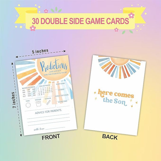 Baby Predictions & Advice Game Set -Retro Sunshine Theme Baby Shower - Watercolor Sun Theme Baby Shower Game Kit, Gender Reveal, Baby Announcement Party Favor & Supplies - A02