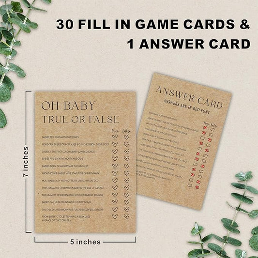 True Or False Baby Shower Game Kit - Set Of 30 Minimalism Brown Game Cards With 1 Answer Card For baby Boy Girl, Baby Announcements, Gender Reveal Games, Party Favors And Supplies-B08