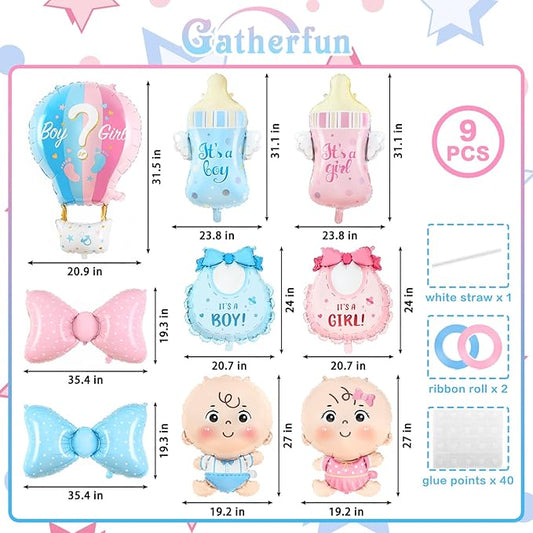 Gender Reveal Decoration Set - Includes Boy or Girl Baby Shower Foil Balloon for Boy or Girl Baby Shower Party Decoration 9 Pcs