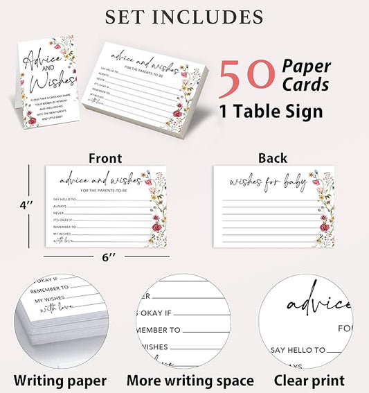 50Pcs Baby Shower Advice and Wishes Cards with Memory Guest Book – Sweet Messages for New Mom & Dad – Baby Shower Games, Party Decorations & Keepsake -A04