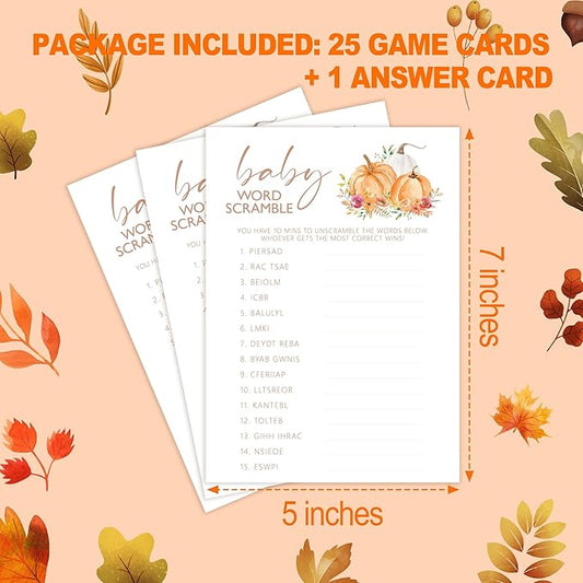 Baby Shower Games, Thanksgiving Baby Word Scramble + 1 Answer Card, 25 Sets Baby Gender Reveal Party Decorations Supplies - E07