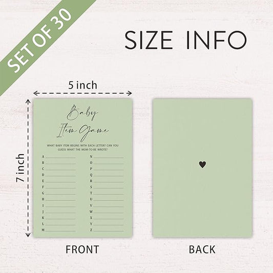 30 Pcs Minimalist Green Baby Shower Game Cards, Baby Shower Games, Gender Reveal Party Supplies - A03
