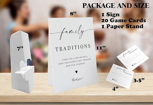 Minimalism Theme Favorite Family Traditions Baby Shower Games Set(1 Sign and 20 Cards), Games for Baby Shower, Wedding Shower, Bridal Shower, Game Night, Gender Reveal Party, Family Day Decorations 08