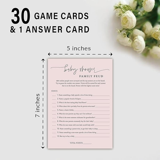Baby Shower Family Feud Game - Pack of 30 Game Cards 1 Answer Key, Baby Shower Game for Boy & Girl, Gender Neutral Baby Shower Decorations, Baby Feud Game Supplies-06A-Indipink