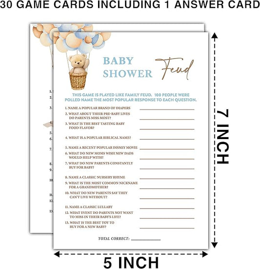 YSTEP We Can Bearly Wait Baby Shower Games, 30 Baby Shower Feud Game Cards with 1 Answer Card, We Can Bearly Wait Gender Reveal Party Supplies Favors (5"x7") - E07