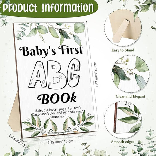 Geelin 51 Pcs Fun Baby Shower Game Activities First Abc Book Sign Coloring Game Card 26 Alphabet a to Z Coloring Card with 24 Watercolor Pen Storage Bag for Baby Shower Party(Greenery)