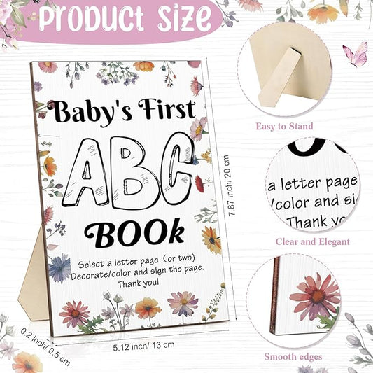 Geelin 51 Pcs Fun Baby Shower Game Activities First Abc Book Sign Coloring Game Card 26 Alphabet a to Z Coloring Card with 24 Watercolor Pen Storage Bag for Baby Shower Party(Wildflowers)