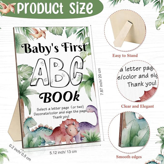 Geelin 51 Pcs Fun Baby Shower Game Activities First ABC Book Sign Coloring Game Card 26 Alphabet a to Z Coloring Card with 24 Watercolor Pen Storage Bag for Baby Shower Party(Dinosaur)