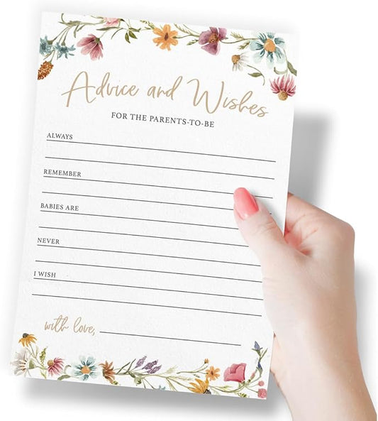 Printed Party Advice & Wishes for The New Parents – Baby Shower Advice Cards, Wishes for Mommy & Daddy, Gender Reveal Boy or Girl, Wildflower Garden Theme, 30 Cards