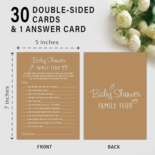 Family Feud Baby Shower Game - Pack of 30 Cards, Answer Key, Gender Neutral Decorations, Feud Game Supplies-01F-Caramel