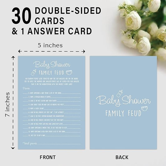 Baby Shower Family Feud Game - 30 Cards, Answer Key, Gender Neutral Decorations for Boy & Girl - Bluish