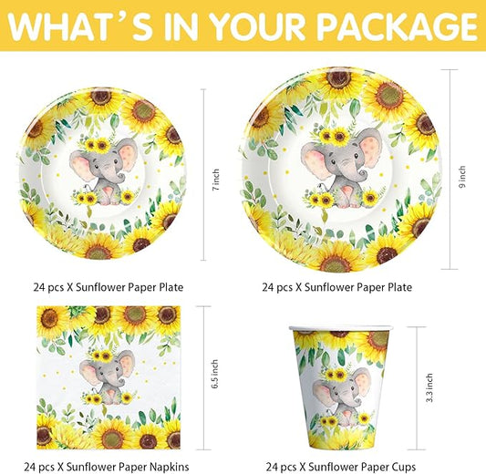 Xigejob Elephant Baby Shower Party Supplies - Elephant Baby Shower Birthday Decorations Tableware Include Plates, Cups, Napkins, Tablecloth, Cutlery, Straws | Serves 24