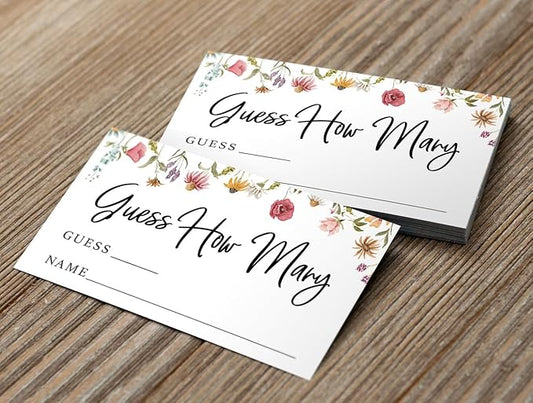 Printed Party Candy Jar Guessing Game (Set of 50), Wildflower Bloom Theme, includes Matching Table Display Sign