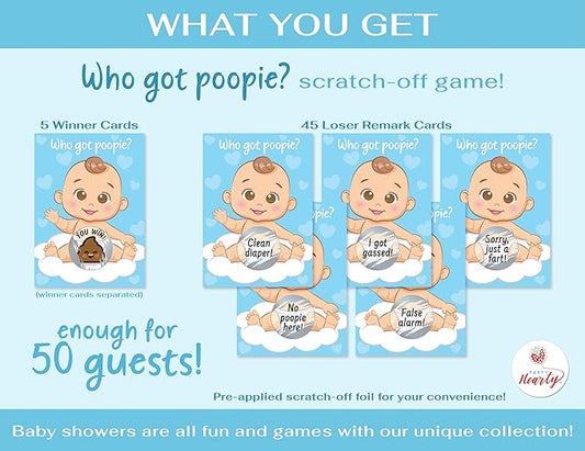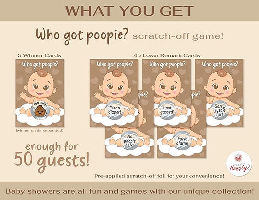 Party Hearty Delightful Baby Shower Fun - 50 Hilarious Poopie Scratch-Offs - Ideal for All Genders