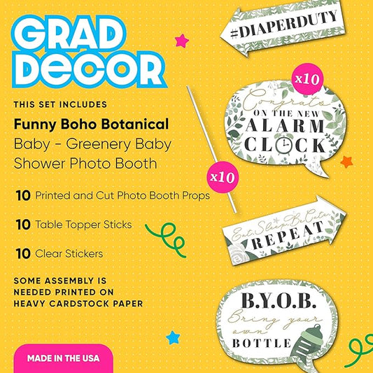 Big Dot of Happiness Funny Boho Botanical Baby - Greenery Baby Shower Photo Booth Props Kit - 10 Piece