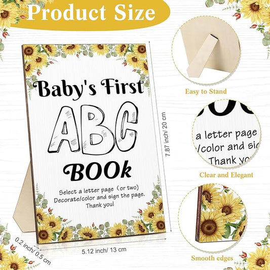 Geelin 51 Pcs Fun Baby Shower Game Activities First ABC Book Sign Coloring Game Card 26 Alphabet a to Z Coloring Card with 24 Watercolor Pen Storage Bag for Baby Shower Party(Sunflower)