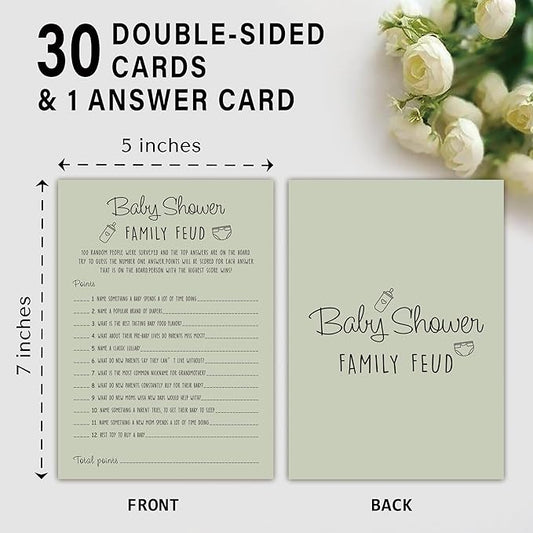 Baby Shower Family Feud Game - Pack of 30 Game Cards 1 Answer Key, Baby Shower Game for Boy & Girl, Gender Neutral Baby Shower Decorations, Baby Feud Game Supplies-01E-Atrovirens