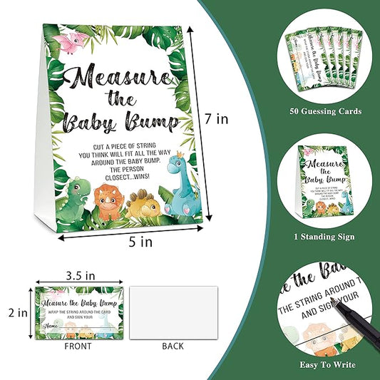 Baby Shower Game Set, Measure The Baby Bump(1 Standing Sign + 50 Find Cards), Safari Jungle How Big is Mommy's Belly Party Game, Dinosaur Baby Shower/Gender Reveal Party Favor Decor(A04)