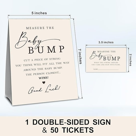 Beige Baby Shower Measure The Baby Bump, Measure Mommy's Belly Game Set - 1 Self-Standing Sign And 50 Tickets - Gender Reveal, Baby Shower, Baby Announcement Activity & Party Favor Supplies - A14