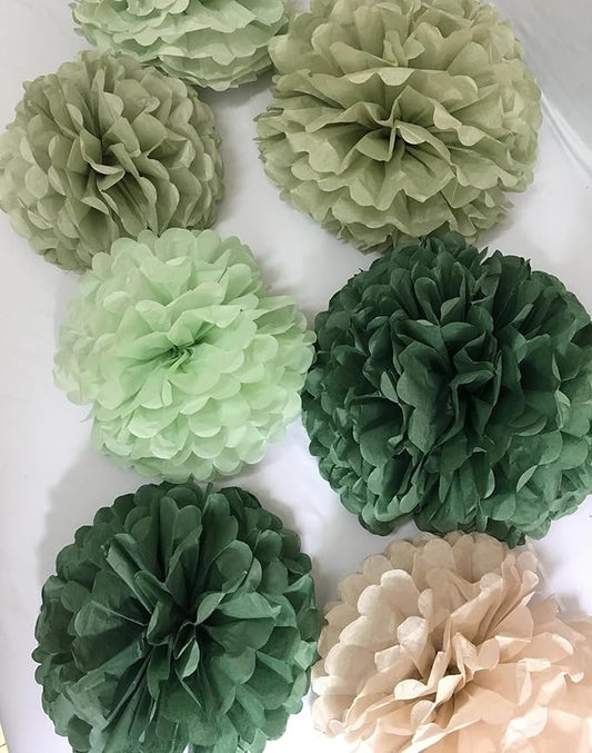 Tissue Paper Pom Poms Kit Paper Flowers 12pieces for Gender Baby Shower Wedding Bridal Bachelorette Birthday Party Decorations (Sage Olive Green)