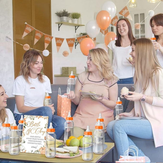Hushee 24 Sets Funny Plastic Bottle Chug Baby Shower Games Diaper Baby Shower Game Gender Reveal Race Gifts Decoration for Adults Boys Girls (Transparent White)