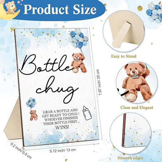 Bear Cool Baby Shower Games Bottle Chug Sign Wooden Brown Theme Gift Sets Gender Reveal Party Favors and 12 Pcs Baby Bottle Shower Favor for Gender Reveal Party Decor(Bear)