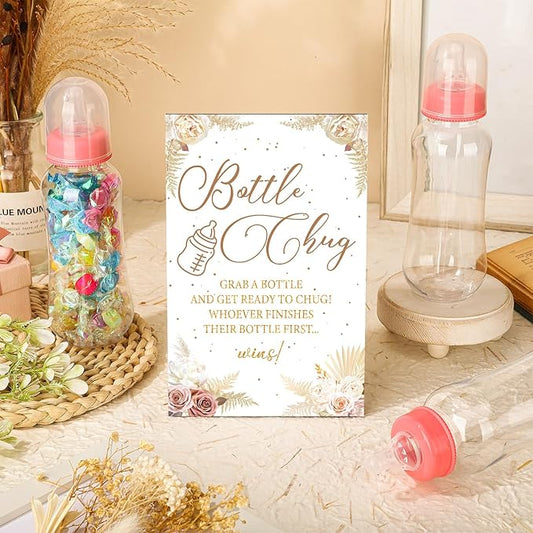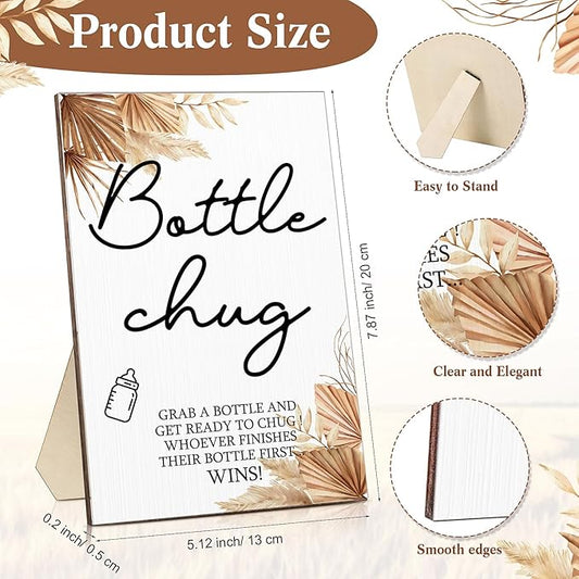 TrelaCo Cool Baby Shower Games Wooden Bottle Chug Sign Boho Theme Gift Sets and 12 Pcs Baby Bottle Shower Favor for Pampas Games Gender Reveal (Boho Pampas)