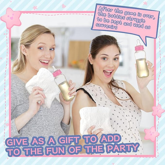 Hushee 12 Sets Funny Plastic Bottle Chug Baby Shower Games Diaper Baby Shower Game Gender Reveal Race Gifts Decoration for Adults Boys Girls (Pink)