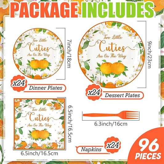 Zhehao 96 Pcs Twins Baby Shower Decoration Supplies Twins Cuties Baby Shower Tableware Set Eucalyptus Leaf Orange Strawberry Greenery Pumpkin Themed Plates Napkins Forks for 24 Guest (Pumpkin)