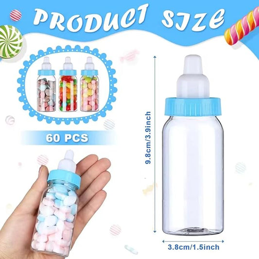 60 Pcs 4.5 Inch Baby Mini Milk Bottle Baby Shower Favor Fillable Feeding Bottle Candy Box Small Plastic Candy Container DIY Gift for Boy Girl Newborn Baptism Party Decor (Blue)