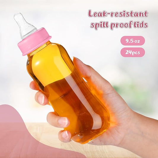 Norme Baby Shower Bottles 9.5 oz Plastic Baby Bottles Chug Sign Shower Game Party Favors Baby Bottles Bulk for Baby Shower Decorations Gender Reveal Gifts(Many Color, 24 Pcs)