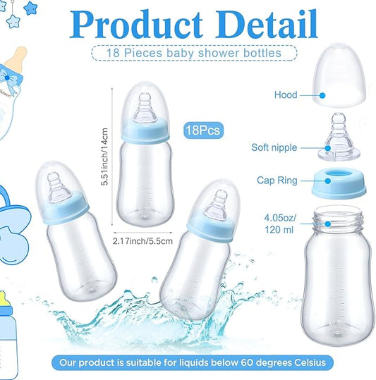 Roowest Bottle Chug Baby Shower Game Sign Wooden Game Table Decor 18 Pcs Baby Bottles 120 ml Mini Milk Bottles Baby Bottles for Baby Shower Game Gender Reveal Party (Blue,Cowboy)