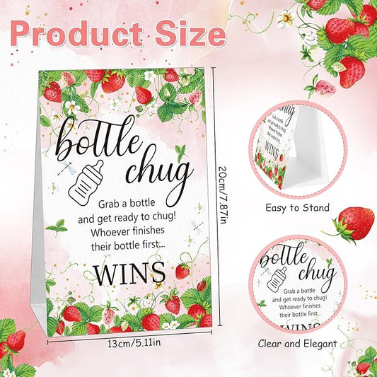 TrelaCo Cool Baby Shower Games Sets 12 Pcs Feeding Bottles with 1 Bottle Chug Sign for Gender Reveal Baby Shower Party Favors Decoration Games(Strawberry,Pink)