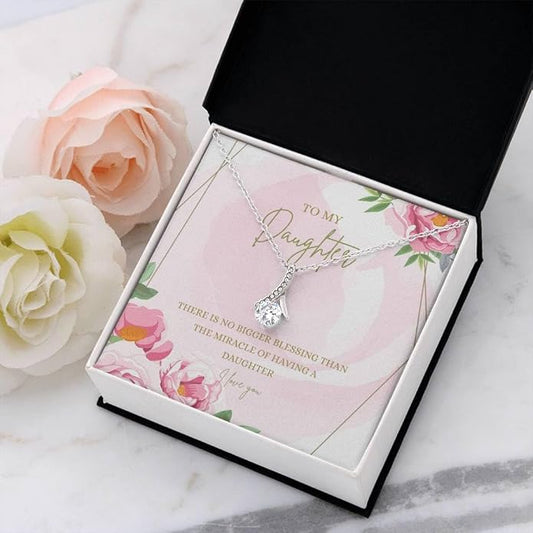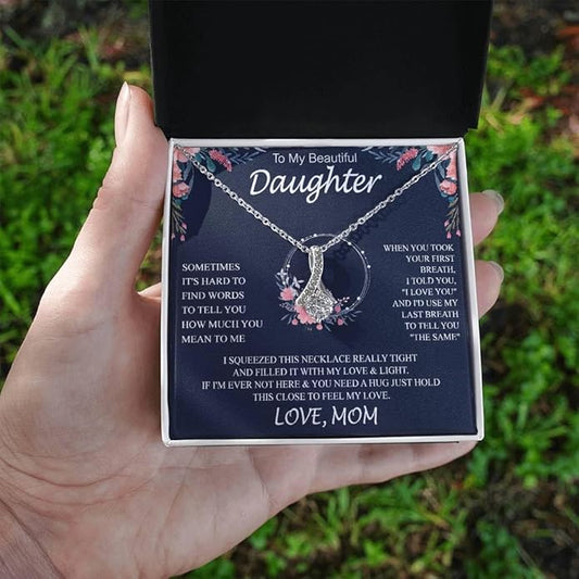 To My Beautiful Daughter Necklace from Mom & Dad | Cubic Zirconia Pendant with Heartfelt Message Card & Gift Box | Daughter Birthday, Graduation, Christmas Jewelry Gift from Parents